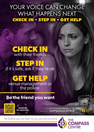 Distract or interrupt if someone is behaving inappropriately, even a small intervention can prevent harm. “Hey, I’ve no seen you for ages! Come grab a drink with us.” “I think your pals are looking for you”